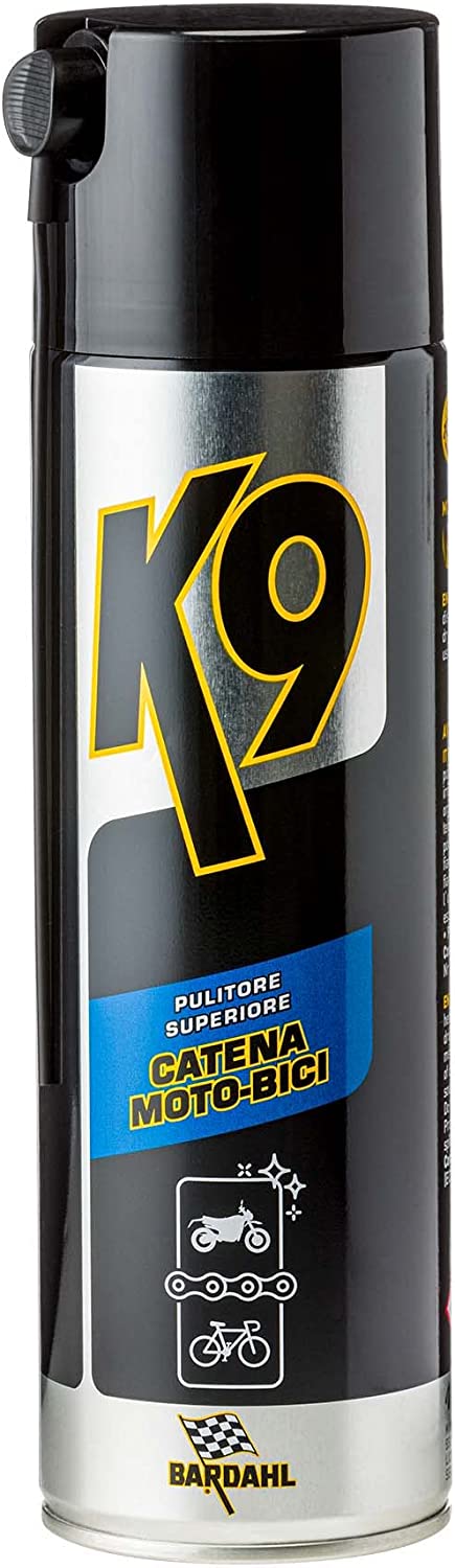 The Bardahl chain cleaner from the K9 line penetrates deeply between the links without damaging the O-Rings.