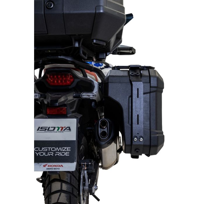 Aggiungi capacità di carico alla tua Honda Africa Twin CRF 1100 L - ADV Sport 2024 con la coppia di portapacchi in alluminio Isotta, progettata per garantire resistenza, leggerezza e praticità durante ogni viaggio, sia su strada che in off-road.