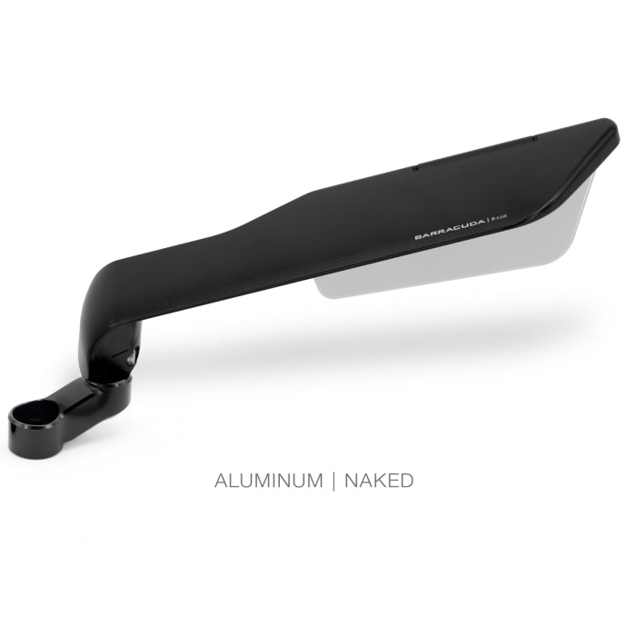 È composto da due elementi principali: una sezione fissa che funge da ala aerodinamica, che si installa alla carenatura tramite un attacco specifico e la parte retrovisore di brevetto originale BARRACUDA che con una semplice regolazione viene inglobata nel corpo specchio mantenendo comunque la funzione di ala aerodinamica.