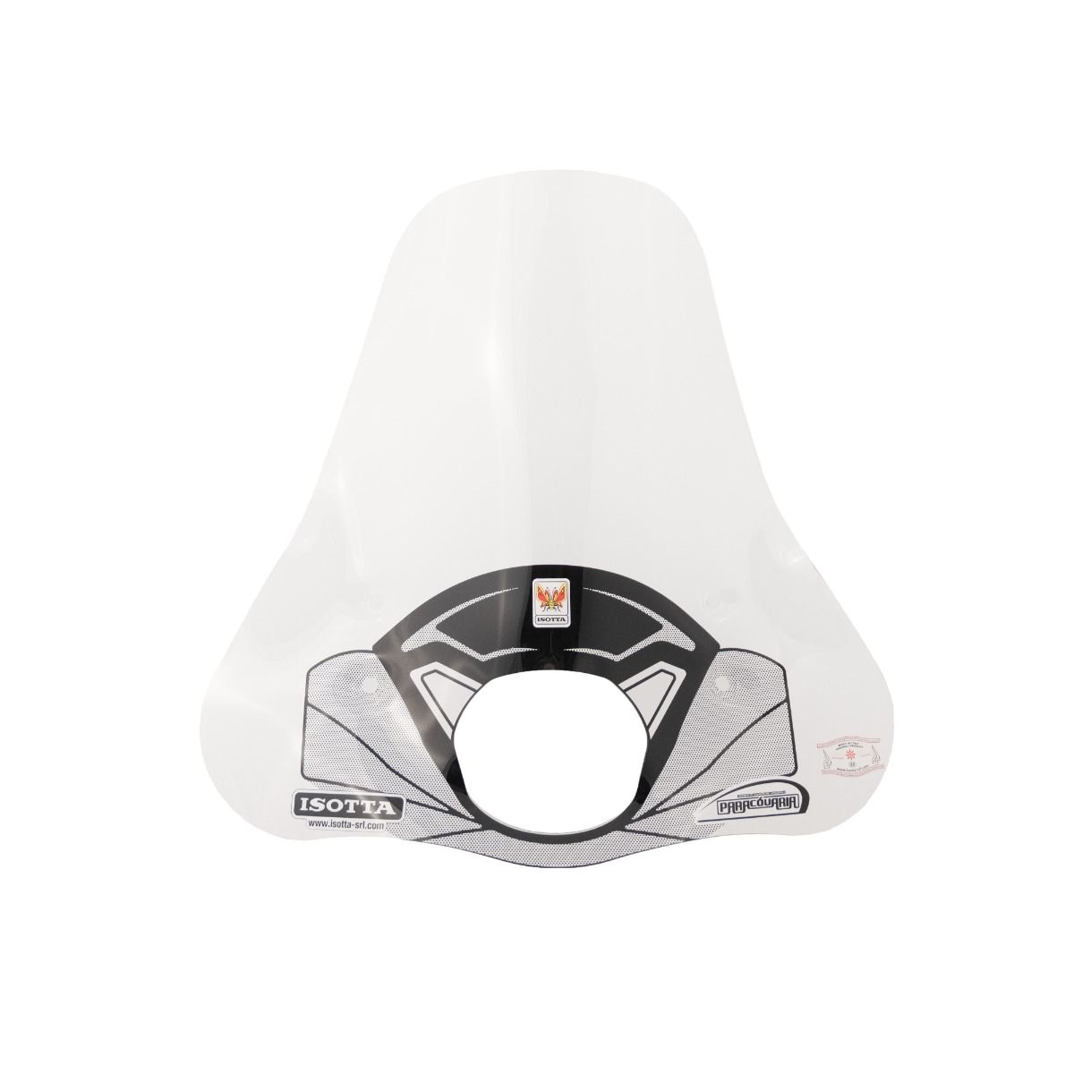 Parabrezza Isotta realizzato per garantire un'ottimale esperienza del pilota, dimensioni maggiorate rispetto all'originale. Il materiale è plexiglass (PMMA) di primissima scelta proveniente da una filiera nazionale o Europea per garantire la massima qualità e tracciabilità dei nostri prodotti esclusivamente made in Italy. Questo materiale mantiene la sua trasparenza e lucentezza inalterata nel tempo.