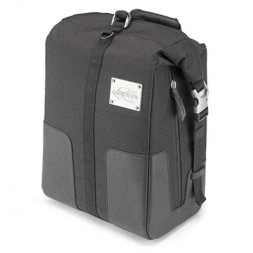 Il rinforzo interno in polipropilene assicura la stabilità della borsa, mentre lo spallaccio per il trasporto e la maniglia frontale la rendono comoda da trasportare anche fuori dalla moto.